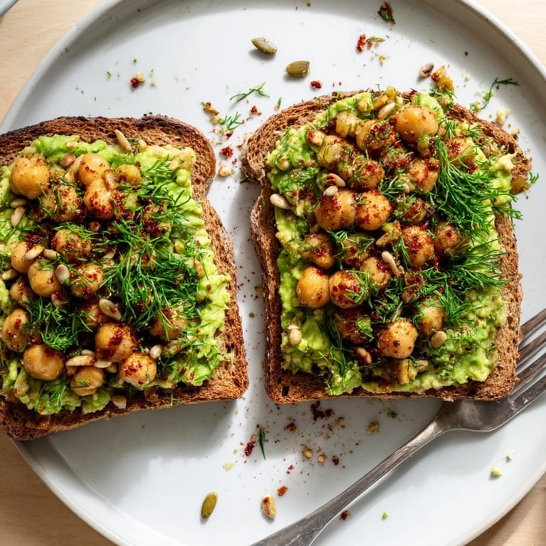 Save A vibrant, nourishing spin on classic avocado toast—creamy avocado, zesty chickpeas, and fresh herbs atop rustic bread. Stylish, satisfying, and budget-friendly.