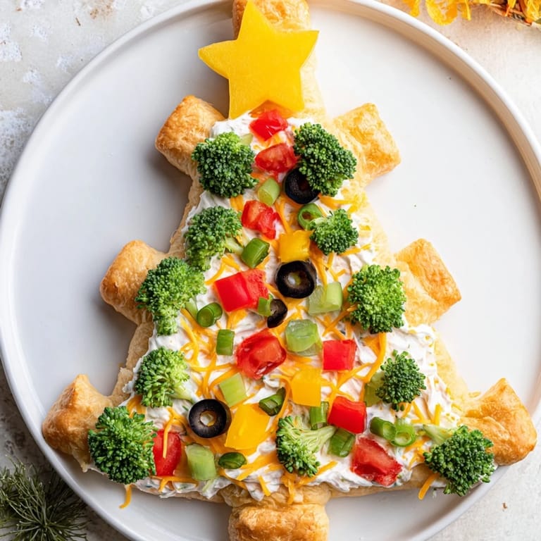 Save A festive, colorful appetizer featuring fresh vegetables and a creamy base, shaped like a Christmas tree—perfect for holiday gatherings.