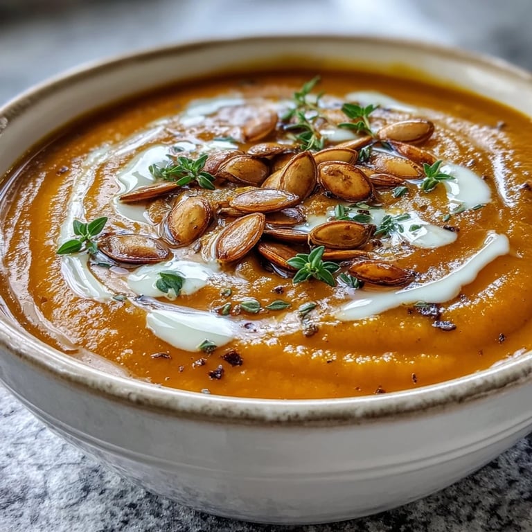 Last November, I made this soup for a friend who was having the kind of day where everything felt heavy. She arrived at my door looking tired, and I had a bowl waiting for her with a drizzle of cream and a handful of toasted seeds on top. Watching her take that first spoonful and then pause—that moment of feeling cared for through food—that's what this soup means to me.