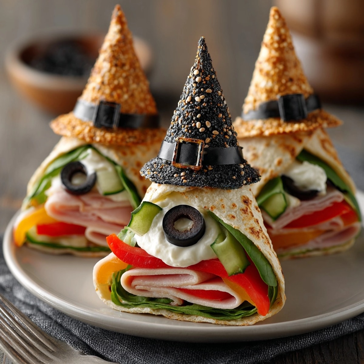 Save This spooky Halloween witch hat tortilla wrap recipe transforms ordinary tortillas into magical party appetizers that will cast a spell on your guests. The combination of savory cream cheese, fresh vegetables, and deli meats rolled into witch hat shapes creates a festive treat that's as fun to make as it is to eat.