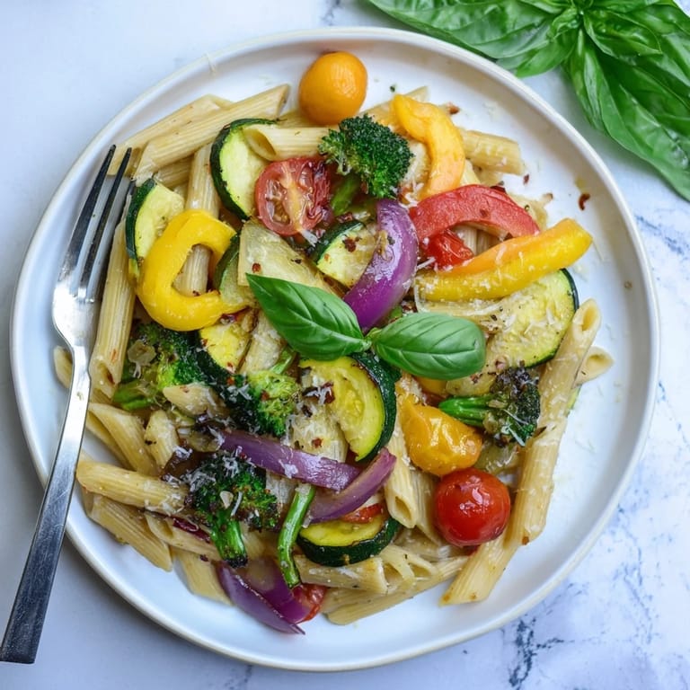 Save There was a Wednesday evening last spring when I realized I had nothing planned for dinner and a crisper drawer full of vegetables that needed attention. I pulled out every colorful thing I could find, lined them up on the counter, and decided to let the oven do most of the work. What emerged was this bright, garlicky pasta that my youngest declared better than takeout. Now it's my go-to when I want something that feels special but doesn't require much fuss.