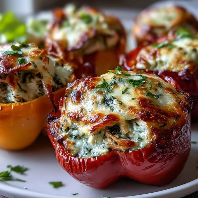 Save My neighbor came by one afternoon with a bundle of mini sweet peppers from her garden, and honestly, I wasn't sure what to do with them at first. Then it hit me—why not stuff them with something creamy and bright? I grabbed some leftover rotisserie chicken, a jar of pesto, and whatever cheese was in my fridge, and these little jewels became an instant favorite. They're the kind of dish that looks fancy enough for guests but comes together in under an hour on a regular Tuesday.