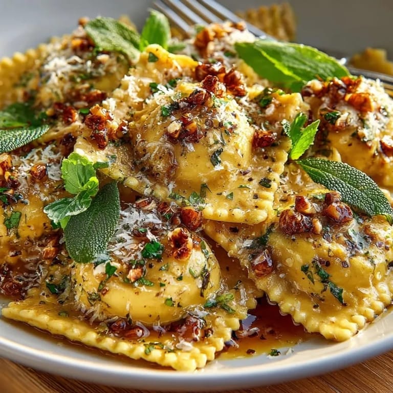Save This homemade acorn squash ravioli transforms humble ingredients into an elegant dish that tastes like it came from a fine Italian restaurant. The sweet roasted squash filling paired with nutty brown butter creates a harmony of flavors that makes this dish truly special, while the fresh sage adds an aromatic finishing touch that elevates the entire experience.