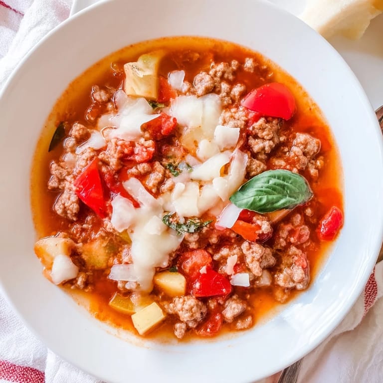 This cozy soup captures the essence of classic Italian flavors with spicy sausage, tangy tomato base, and melted mozzarella cheese. Sautéed onions, bell pepper, and garlic add depth while herbs like oregano and basil enhance the savory broth. Easy to prepare in under an hour, it’s perfect for warming up on chilly days and pairing with crusty bread. Optional garnishes like fresh basil and versatile add-ins also allow customization.