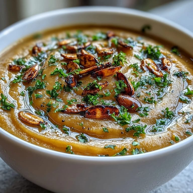 - Ladle into bowls and crown each one with toasted pumpkin seeds, fresh parsley, and maybe another drizzle of cream if you're feeling fancy. The garnishes aren't just pretty—they add texture and freshness that makes each spoonful more interesting.