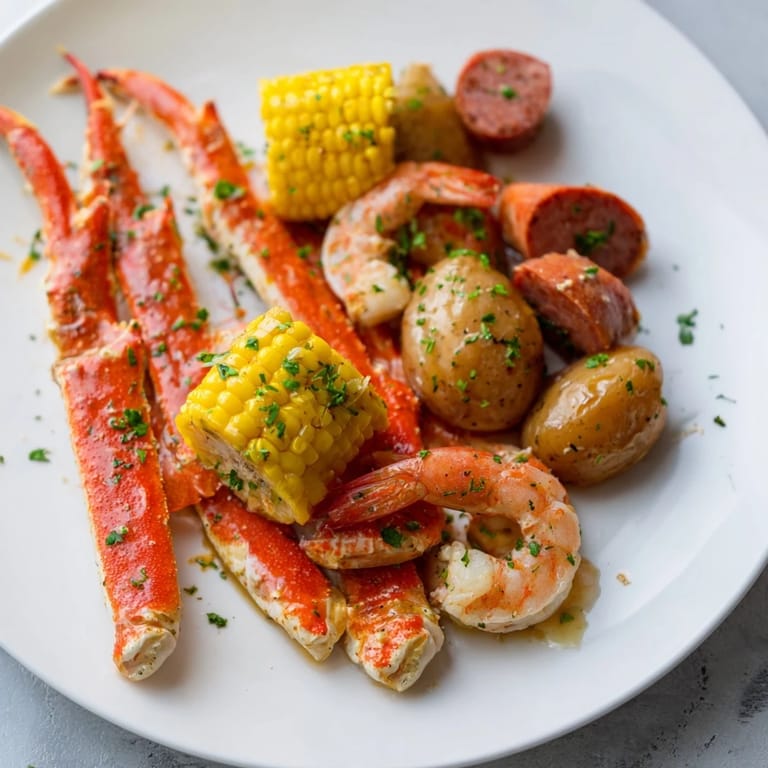 Save A festive, flavor-packed Southern-style seafood boil with juicy crab legs, plump shrimp, spicy sausage, potatoes, and corn, all tossed in aromatic Cajun spices. Perfect for sharing!