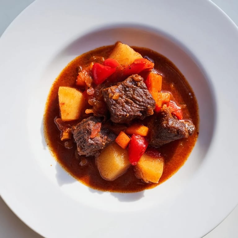 Save A hearty, robust stew featuring tender beef simmered with smoked paprika, garlic, and vegetables perfect for comforting meals on a budget.